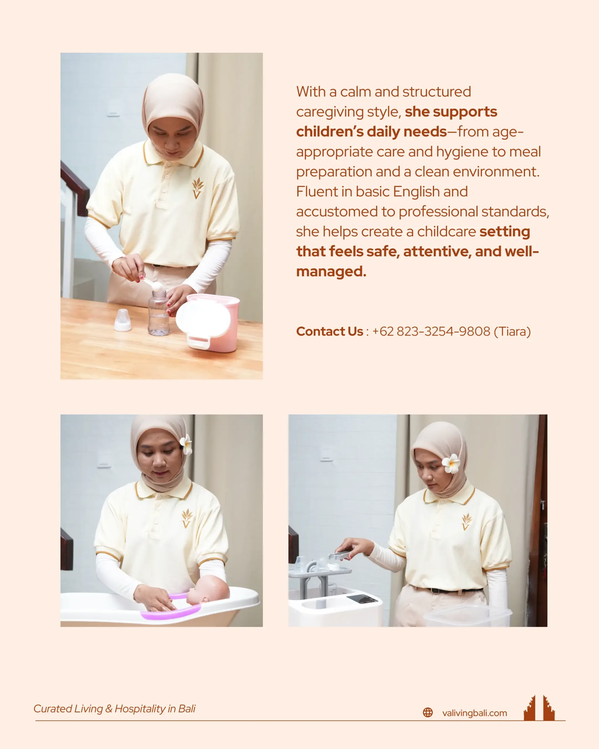 Dwi Miranti is a highly experienced Valiving child care professional with a strong background in professional childcare wiith 7 years of experience in Singapore, Dwi Miranti is accustomed to professional childcare standards, structured routines, and high expectations for safety, hygiene, and consistency.