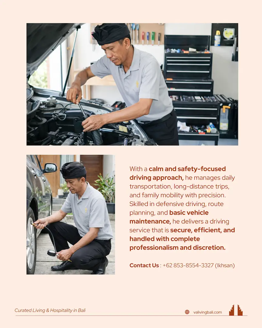 Panca Syahputra is a professional Valiving family driver known for his disciplined, safety-focused approach and calm judgment on the road. With experience across corporate, private, and personal transportation, he manages daily mobility and long-distance travel with precision and responsibility.